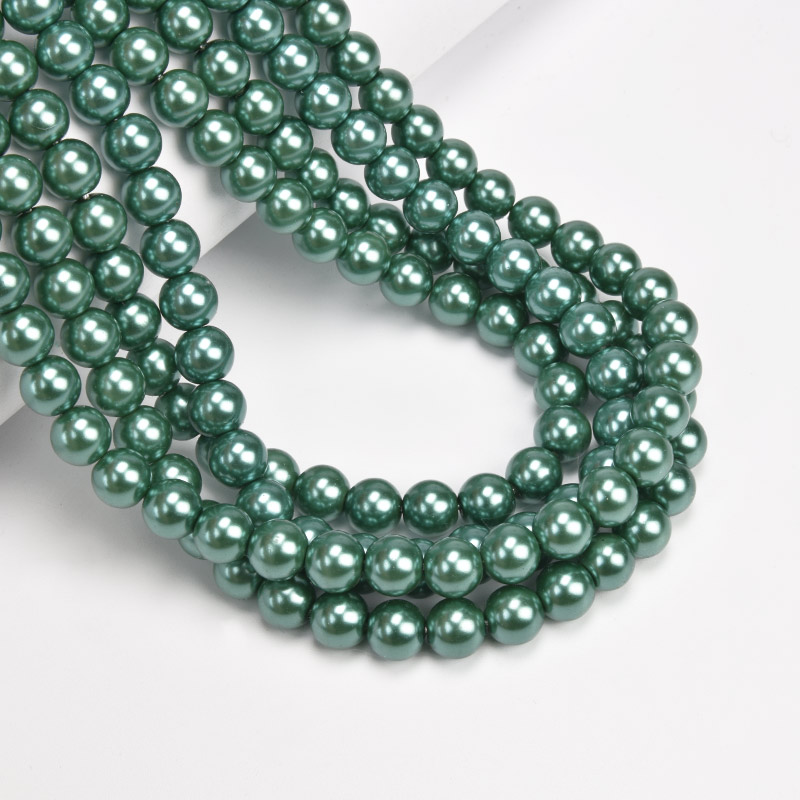 Намистини скляні Перли Premium, 8 мм, Зелені, Круглі (BUS-060502) / 1 низка