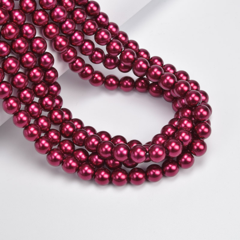 Намистини скляні Перли Premium, 8 мм, Бордові, Круглі (BUS-060506) / 1 низка