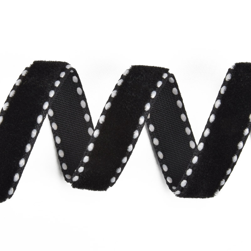 Стрічка оксамитова з кантом, 10 мм, Чорна (LEN-060569) / 1 м