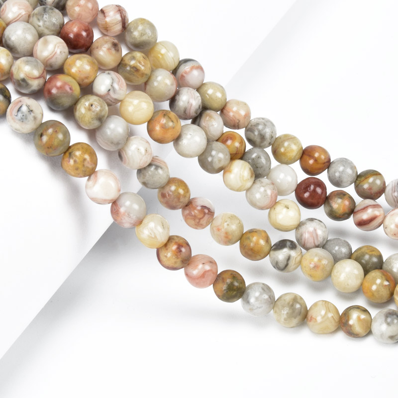 Намистини Агат мереживний (Crazy Agate), Натур. камінь, 6,5 мм, Круглі, 37 см (BUS-060729) / 1 низка