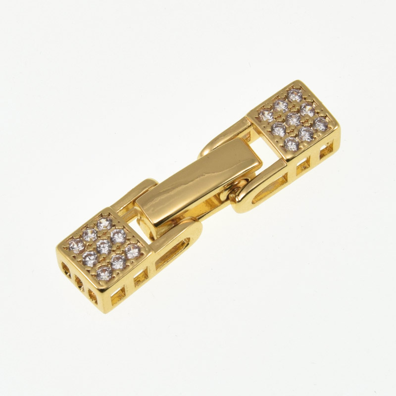 Застібка, 27х6,5 мм, Латунь з покриттям 18 kt, Куб. цирконій (ZAM-060831) / 1 шт