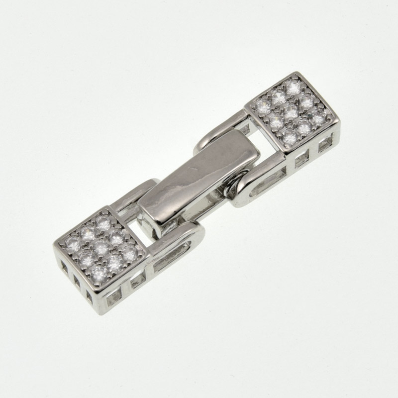 Застібка, 27х6,5 мм, Латунь з покриттям Родій, Куб. цирконій (ZAM-060832) / 1 шт