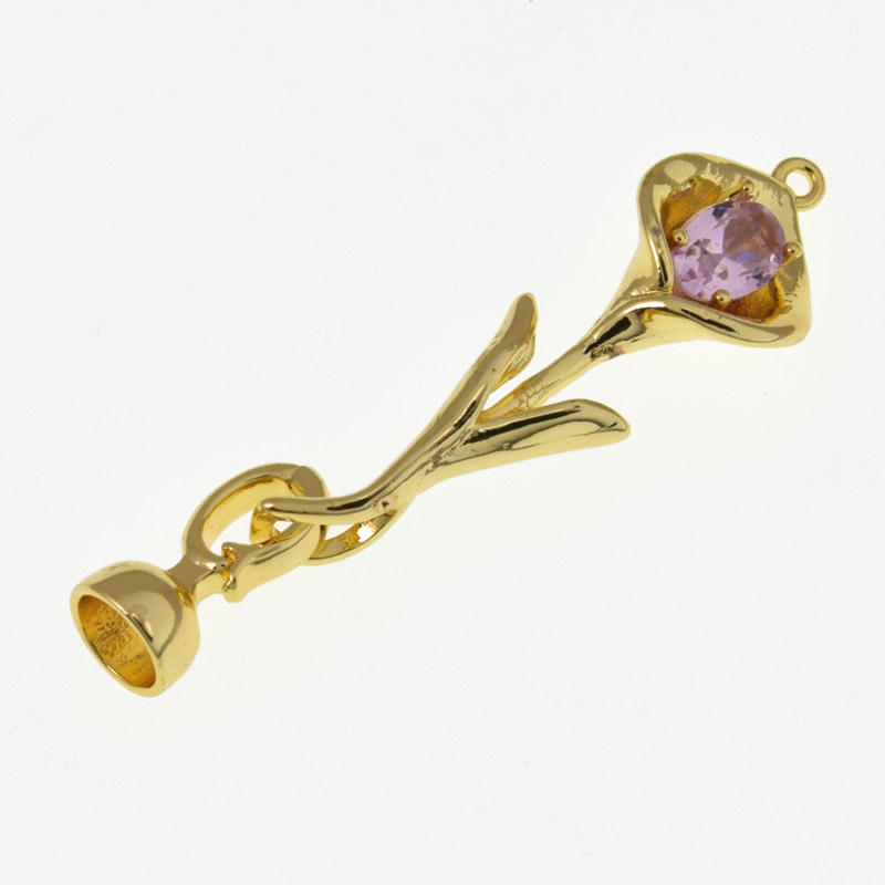 Застібка, 50х12 мм, Латунь з покриттям 18 kt, Куб. цирконій (ZAM-060888) / 1 шт