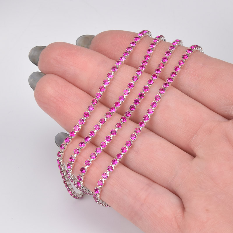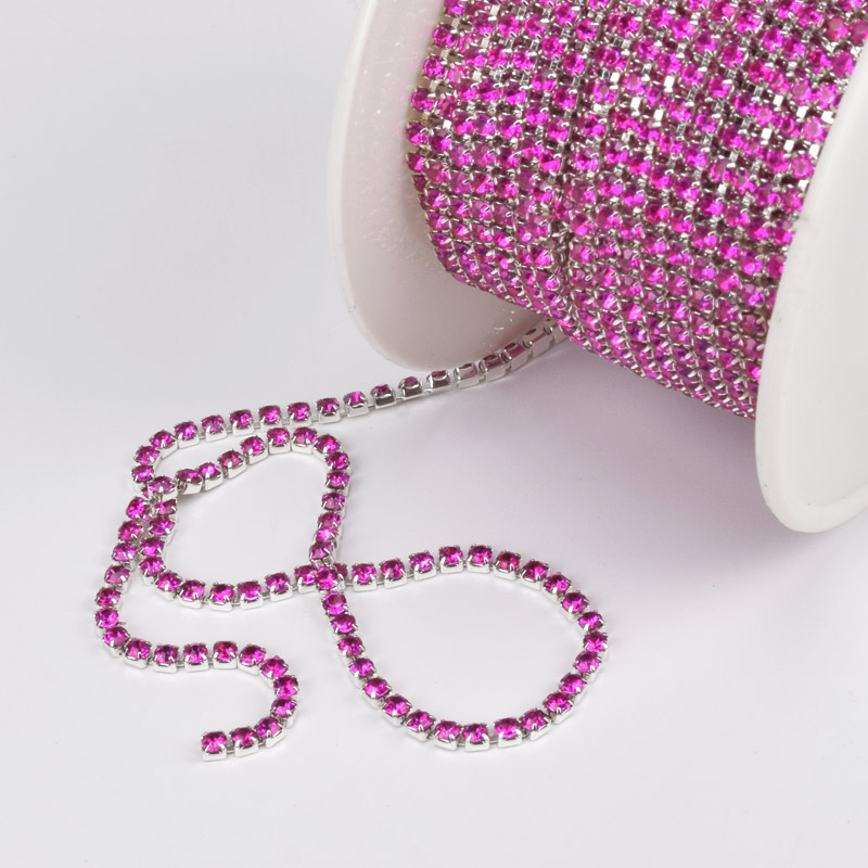 Стразовий ланцюг SS6 (2,0 мм), Світле срібло, Стрази скляні малинові (ZEP-061015) / 1 м