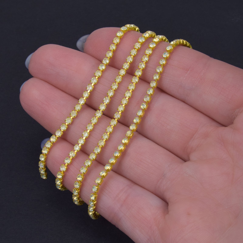 Стразовий ланцюг SS6 - 2,0 мм, Жовтий, Стрази скляні білі хамелеон (ZEP-061028) / 1 м