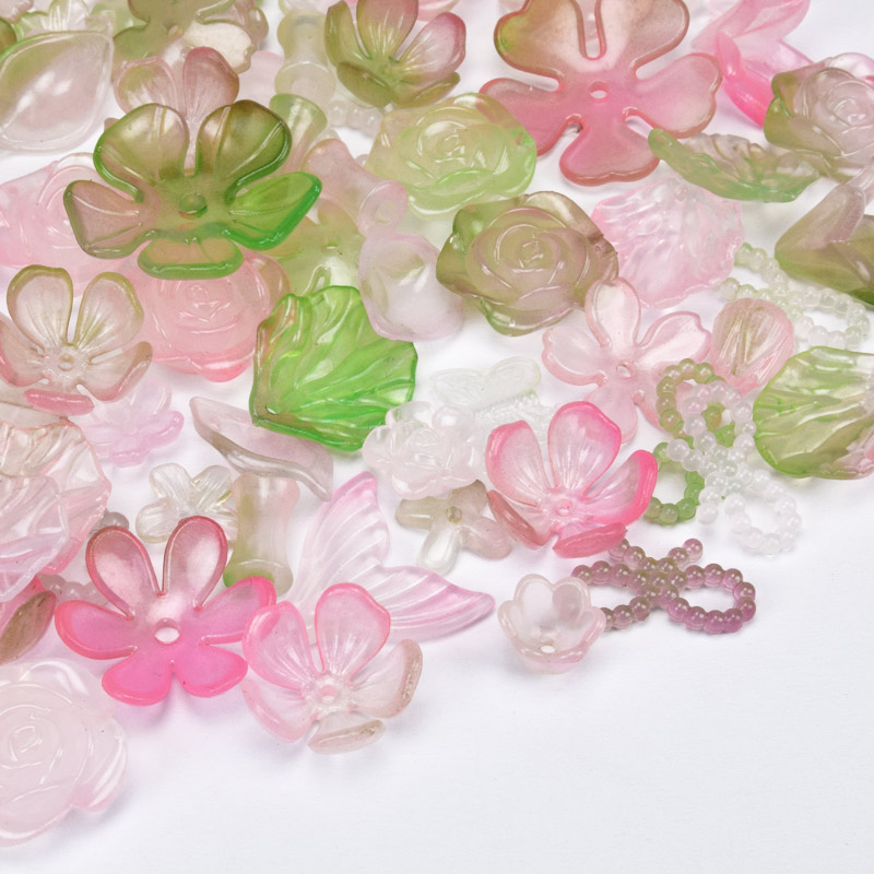 Намистини пластикові, Мікс рожево-зелений (BUS-062013) / 1 уп (25 г)