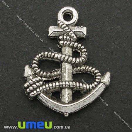 [Архів] Підвіска метал. Якір (двостор.), 24х19 мм, Античне срібло (POD-006400) / 1 шт