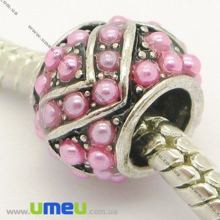 [Архів] Намистина PANDORA мет., 10х8 мм, Античне срібло (рожевий) (BUS-006483) / 1 шт