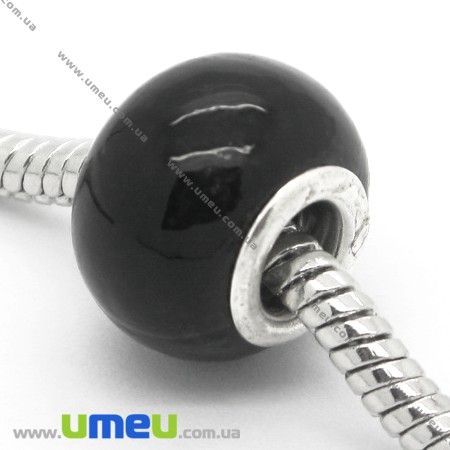[Архів] Намистина PANDORA скляна, 14х10 мм, Чорна, Срібло (BUS-006492) / 1 шт