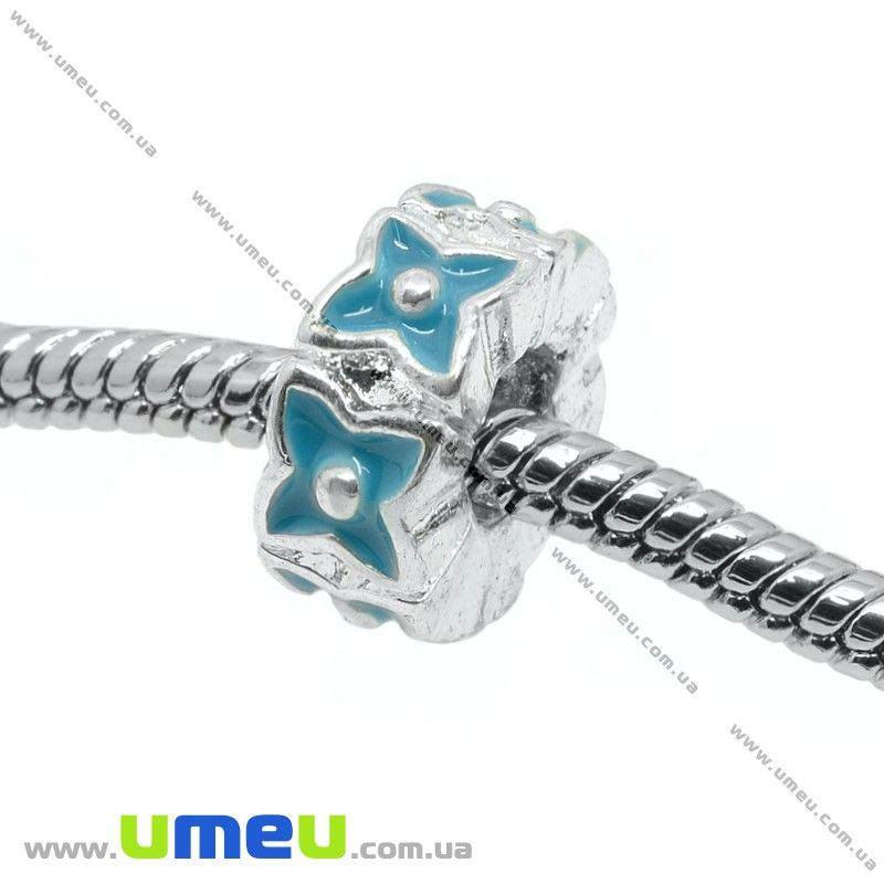 [Архів] Намистина PANDORA мет. Квіти блакитні, 12х5 мм, Світле срібло (BUS-006539) / 1 шт