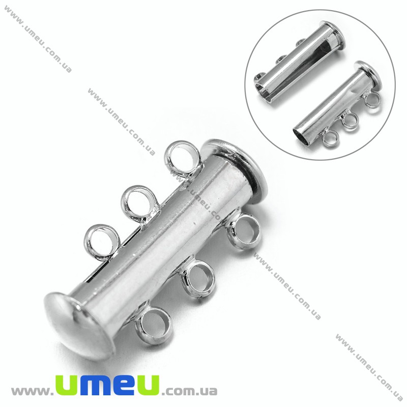 [Архів] Магнітний замок-слайдер на 3 нитки, Темне срібло, 21х10 мм (ZAM-006603) / 1 шт