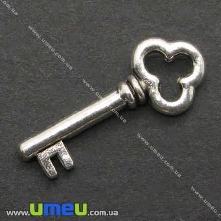 [Архів] Підвіска металева Ключик, Античне срібло, 21х9 мм (POD-006610) / 1 шт
