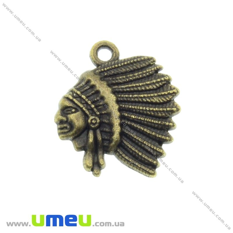 [Архів] Підвіска метал. Індіанець, 21х19 мм, Антична бронза (POD-006641) / 1 шт