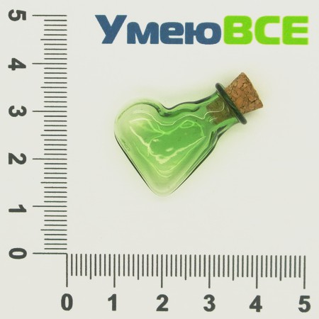 Скляна баночка Серце, Зелена, 24х20 мм (DIF-006695) / 1 шт