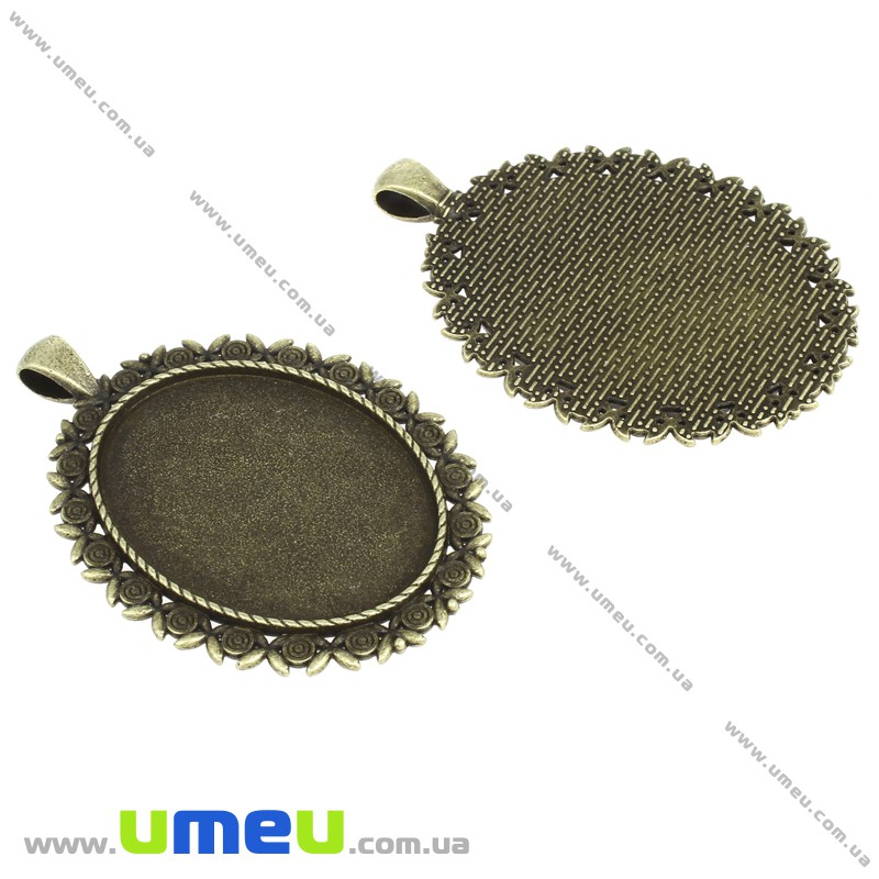 Основа овальна, 60х42 мм, 40х30 мм, Антична бронза (OSN-006739) / 1 шт