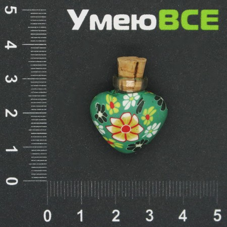 Скляна баночка з полімерною глиною Серце, Зелена, 24х22 мм (DIF-006769) / 1 шт