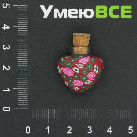 Скляна баночка з полімерною глиною Серце, Червона, 24х22 мм (DIF-006771) / 1 шт