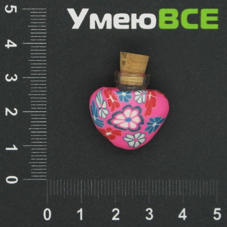 Скляна баночка з полімерною глиною Серце, Яскраво-рожева, 24х22 мм (DIF-006774) / 1 шт