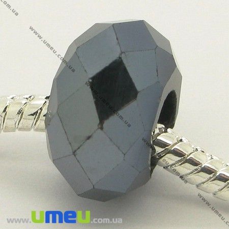 [Архів] Намистина PANDORA скляна під кришталь, 14х8 мм, Мокрий асфальт (BUS-006862) / 1 шт