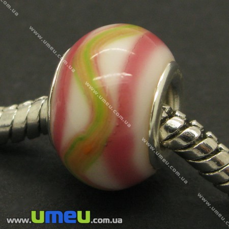 [Архів] Намистина PANDORA Lampwork, 13х9 мм, Біла, Срібло (BUS-006921) / 1 шт