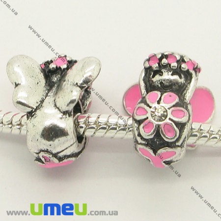 [Архів] Намистина PANDORA мет. Бджілка рожева, 15х12 мм, Античне срібло (BUS-006956) / 1 шт