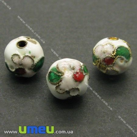 [Архів] Намистина мет. кругла Клуазоне, 9 мм, Біла (BUS-007020) / 1 шт