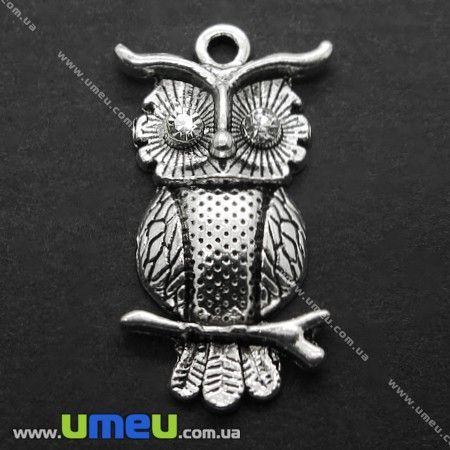 [Архів] Підвіска металева Сова, Античне срібло, 31х17 мм (POD-007103) / 1 шт