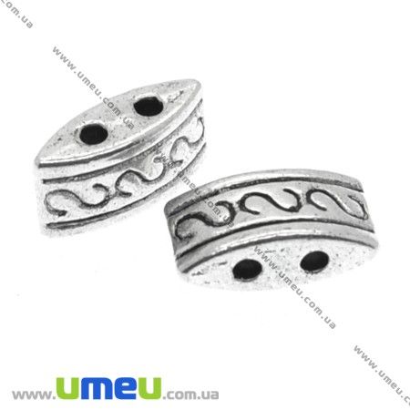 [Архів] Розділювач металевий на 2 отвори, Античне срібло, 10х5 мм (KON-007324) / 1 шт