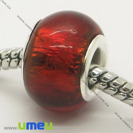 [Архів] Намистина PANDORA Lampwork, 13х9 мм, Червона, Срібло (BUS-007378) / 1 шт
