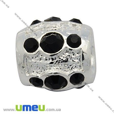 [Архів] Намистина PANDORA мет. зі стразами, 10х10 мм, Чорна, Світле срібло (BUS-007406) / 1 шт