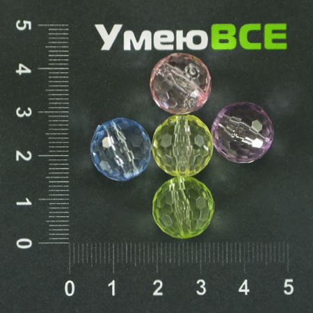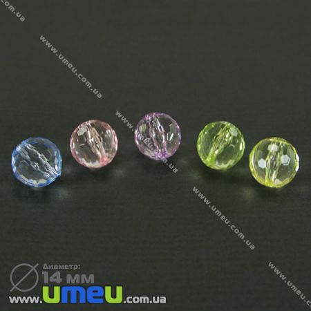 [Архів] Намистина акрилова Кругла гранована, 14 мм, Бузкова (BUS-000747) / 1 шт