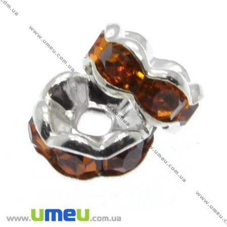 [Архів] Розділювач 6 мм, Срібло, Стрази скляні помаранчеві (OBN-007580) / 1 шт