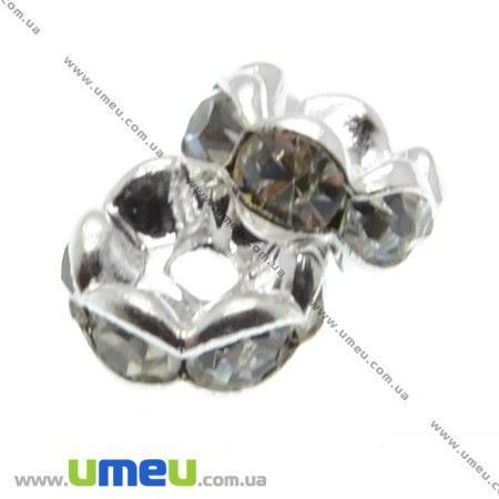 [Архів] Розділювач 6 мм, Срібло, Стрази скляні білі (OBN-007595) / 1 шт