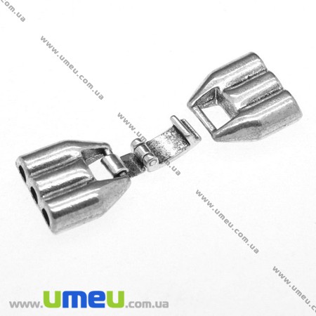 [Архів] Застібка для вклеювання трьох шнурів, Античне срібло, 30х14 мм (ZAM-007697) / 1 шт