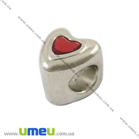 [Архів] Намистина PANDORA мет, Серце червоне 8х8 мм, Темне срібло (BUS-007738) / 1 шт