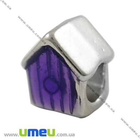 [Архів] Намистина PANDORA мет, Будиночок фіолетовий 10х9 мм, Темне срібло (BUS-007740) / 1 шт