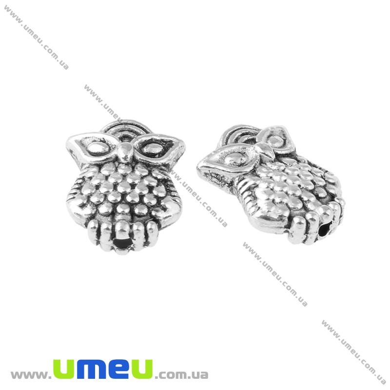 Намистина мет. Сова, 10х8х4 мм, Античне срібло (BUS-007795) / 1 шт