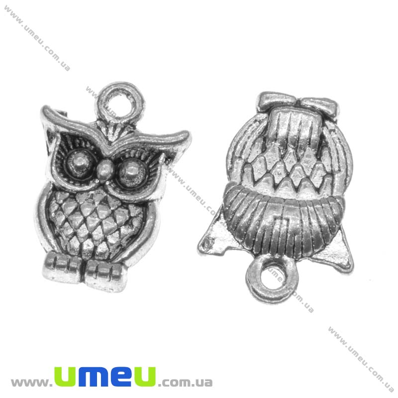 [Архів] Підвіска металева Сова, Античне срібло, 16х12 мм (POD-007931) / 1 шт