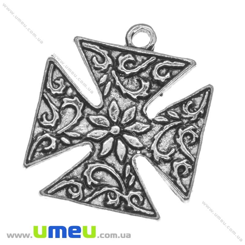 [Архів] Підвіска металева Хрест, Античне срібло, 24х20 мм (POD-007953) / 1 шт