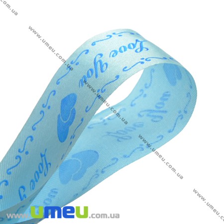 Атласна стрічка з малюнком, 25 мм, Блакитна (LEN-008124) / 1 м
