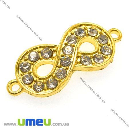 [Архів] Конектор металевий Нескінченність зі стразами, 33х14 мм, Золото (KON-008299) / 1 шт