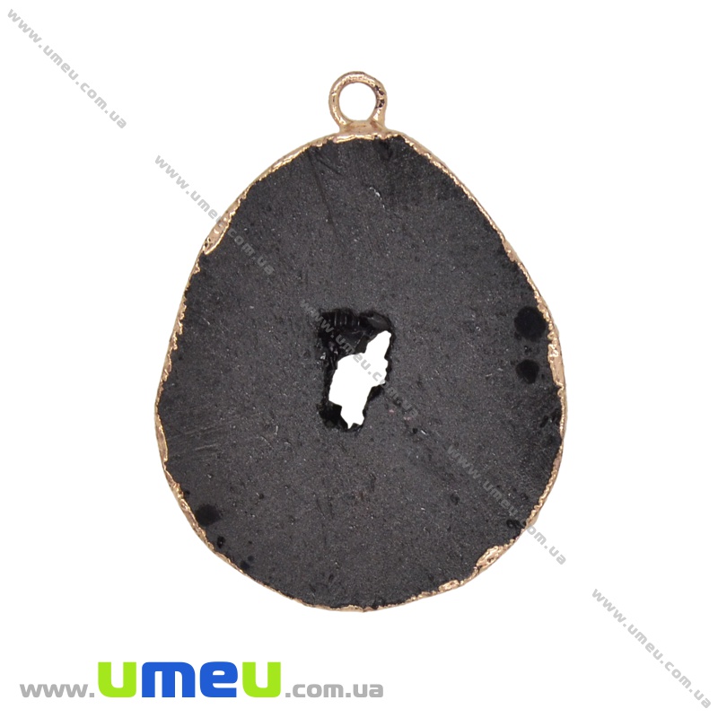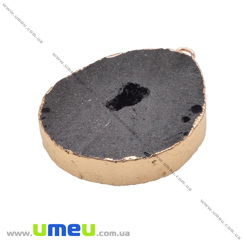 Підвіска з натурального каменю, Друза агату, Чорна, 45х35 мм (POD-009291) / 1 шт