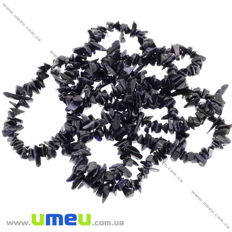 [Архів] Скол (крихта) натуральний камінь Авантюрин синій, 5-8 мм (88-90 см) (BUS-009408) / 1 нить