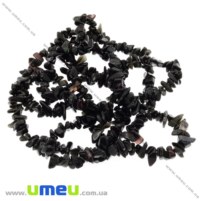 [Архів] Скол (крихта) натуральний камінь Агат чорний, 5-8 мм (84-86 см) (BUS-009410) / 1 нить