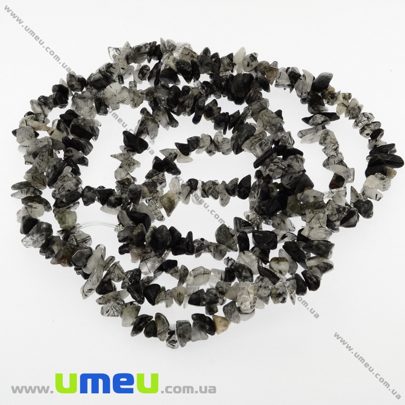 [Архів] Скол (крихта) натуральний камінь Турмаліновий кварц, 5-8 мм, (88-90 см) (BUS-009414) / 1 нить