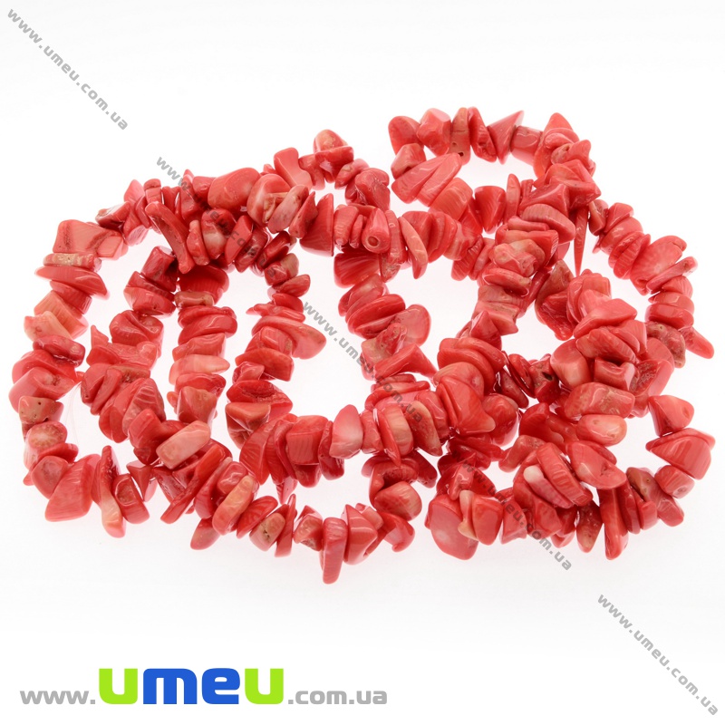 [Архів] Скол (крихта) натуральний камінь Корал, 8-13 мм, (88-90 см) (BUS-009420) / 1 нить