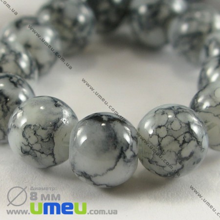 [Архів] Намистина скляна Мармурова, 8 мм, Кругла, Чорно-біла (BUS-000953) / 1 шт