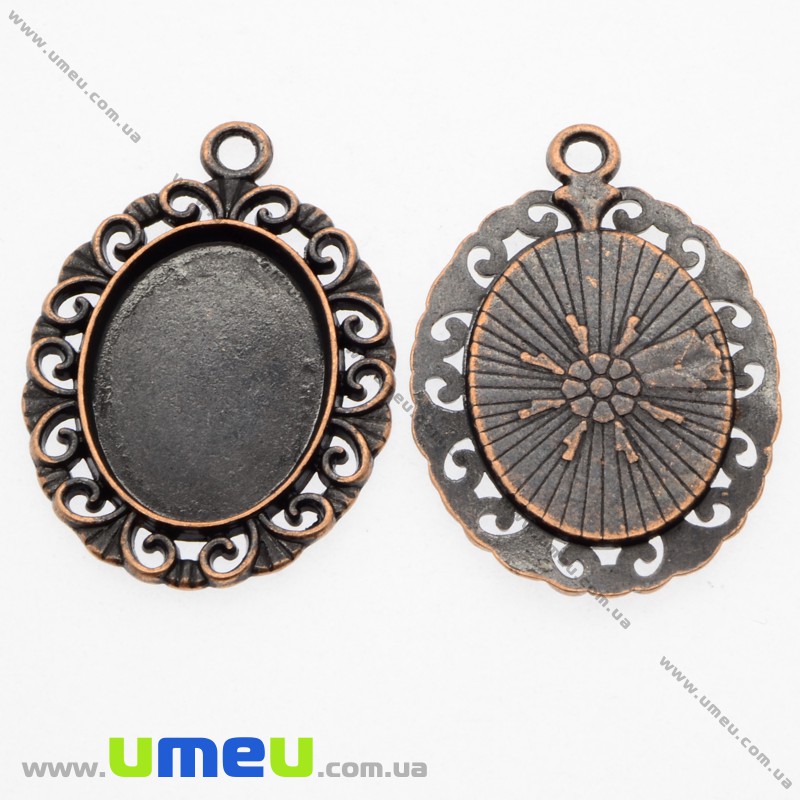 Основа овальна ажурна, 30х21 мм, 18х13 мм, Мідь (OSN-009640) / 1 шт