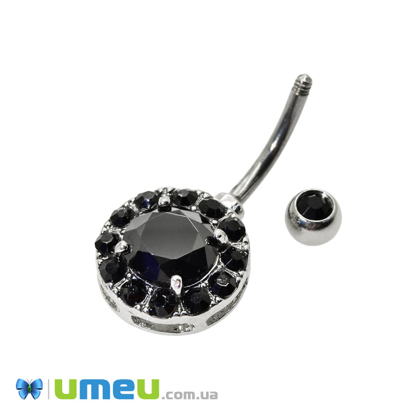 Серьга для пирсинга пупка из нерж. стали, Темное серебро, 29х13 мм, Черная (OSN-048049)