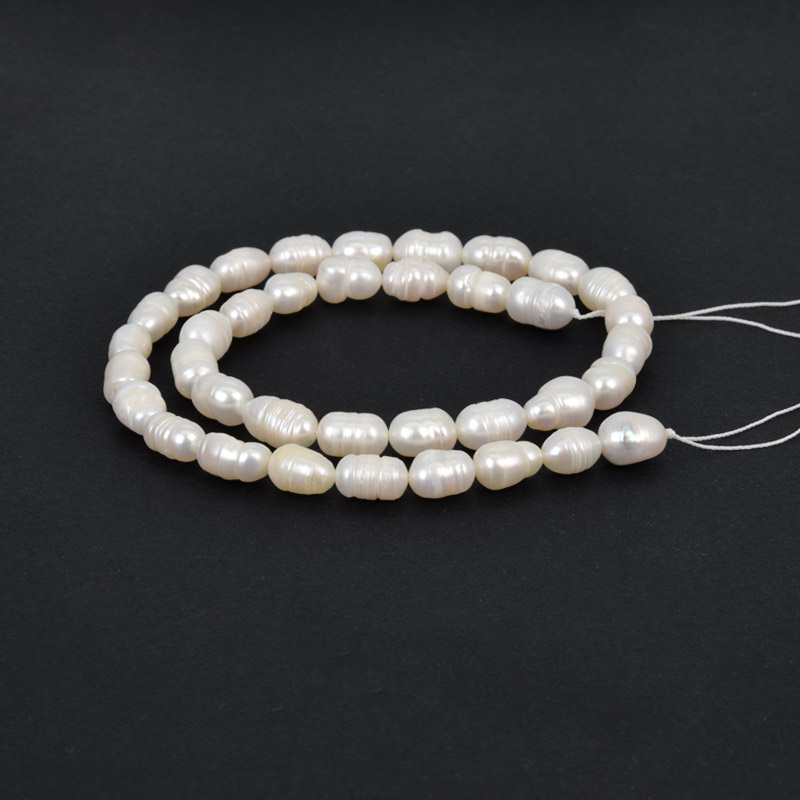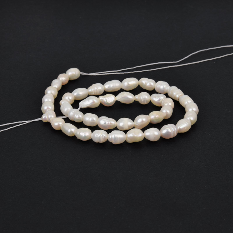 Бусины Жемчуг речной натуральный молочный, 5-7х7-9 мм (18 см) (BUS-053735)
